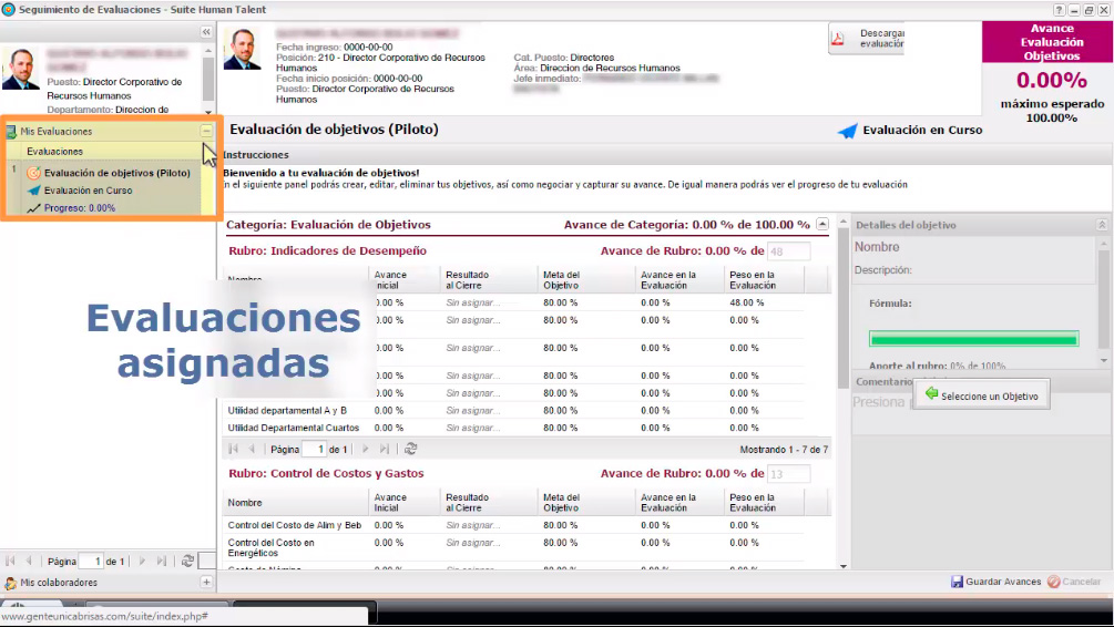 En los tutoriales enfocados para objetivos, los colaboradores tienen acceso a su evaluación de desempeño y consultar su progreso; de esta manera pueden visualizar como su esfuerzo aporta al cumplimiento de los objetivos de la empresa, aumentando así su sentido de pertenencia.